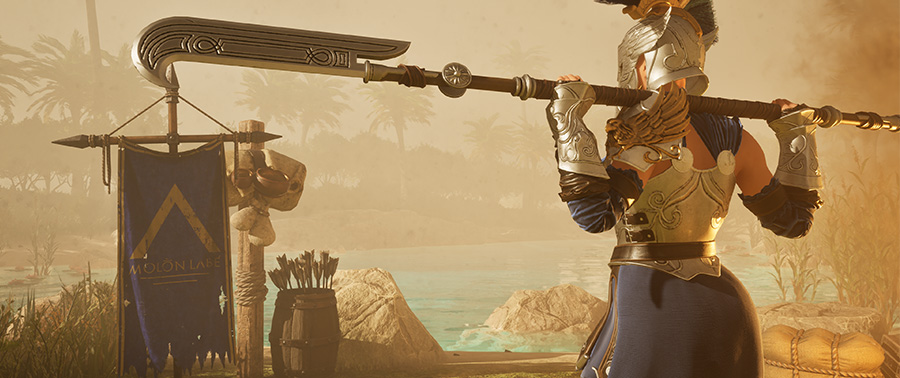 Lastly, to point out some often-requested improvements, players now have a stack and sort button in their inventory! You may also toggle your helmet visibility. Free the beard! Free the pony! Repeatable quests are labeled to reduce confusion after raid-completion, and our archery challenges at Apollo shrines and Euryale’s chamber now use both colors and symbols to improve player accessibility. Please continue to inform us if you experience accessibility concerns!