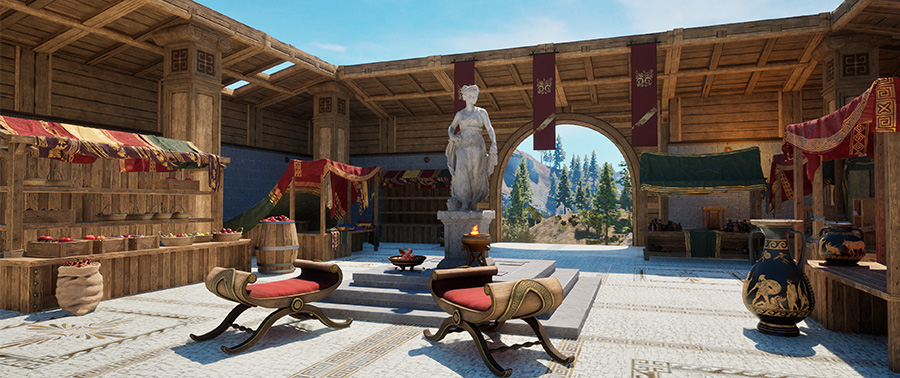 Enjoy around forty new buildables, including daybeds, chairs, paintings, merchant stands, shelves, buckets and more. These new kit collections gives you the ability to give life and vibrance to your palatial courtyards and plazas, as well as decorating your more intimate interior rooms. Players now also immediately unlock the existing brazier collection as part of the wood kit. And per a special player request, we added rose pots in the spirit of Spring!