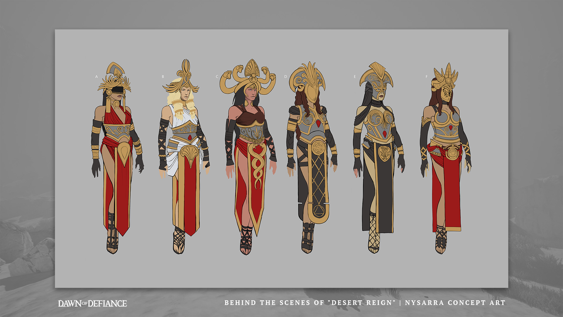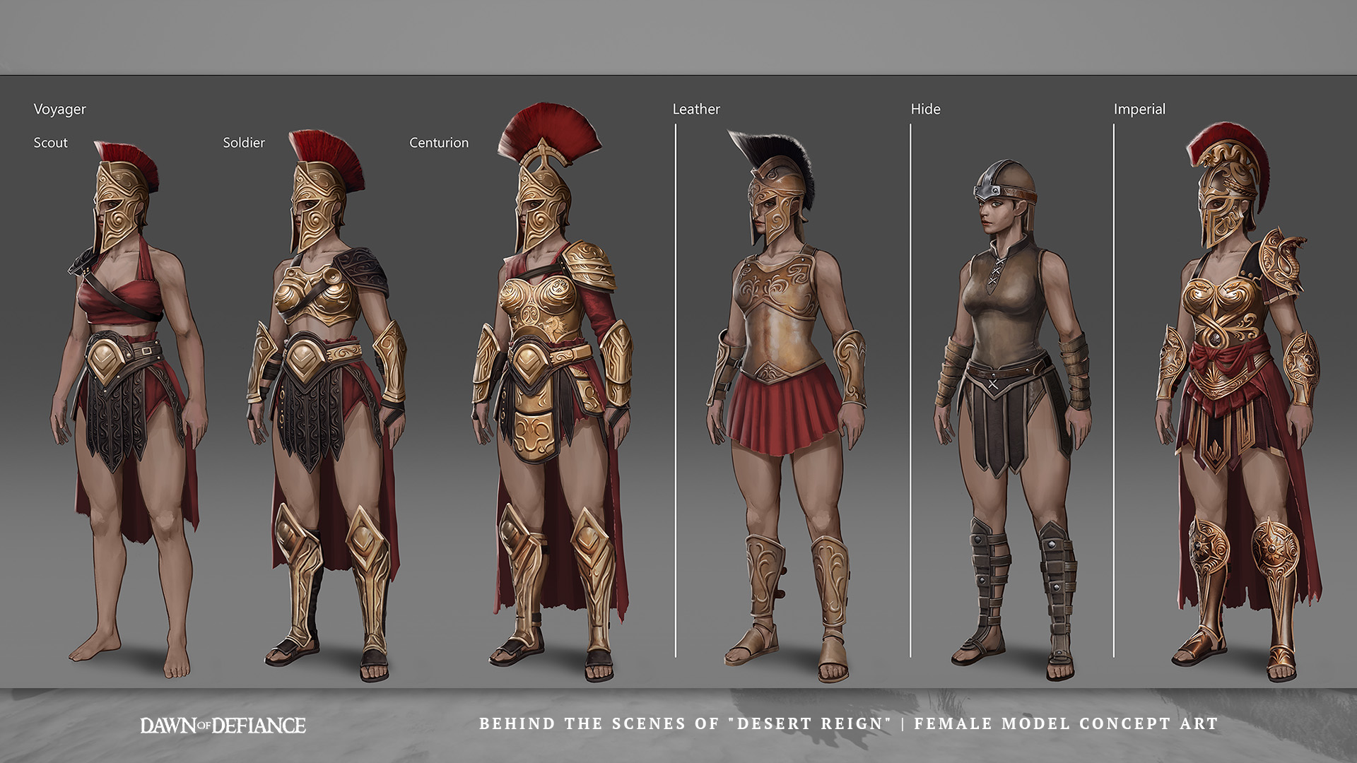 Yes! "Desert Reign" will introduce the new female model. This addition has been a long time coming. Rather than a simple reskin and minor adjustments to armor and animations, our directors set out to redesign them to be both practical and aesthetic for a female model specifically! This includes female models sporting long skirts instead of cloaks, among other subtle decisions! Check out the concept art for the unique revisions coming to all existing gearsets for the female player model, plus four hairstyle options in the works.